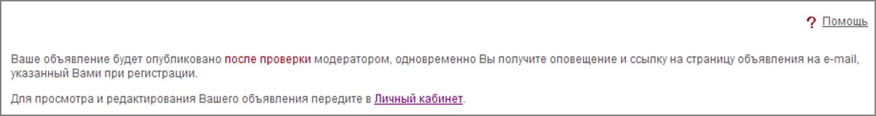 Если после нажатия кнопки "Отправить", Вы не перешли на страницу с подтверждением (остались на текущей странице, компьютер завис), возможно, в момент отправки данных произошел сбой, что иногда бывает. В таком случае необходимо продублировать отправку объявления.