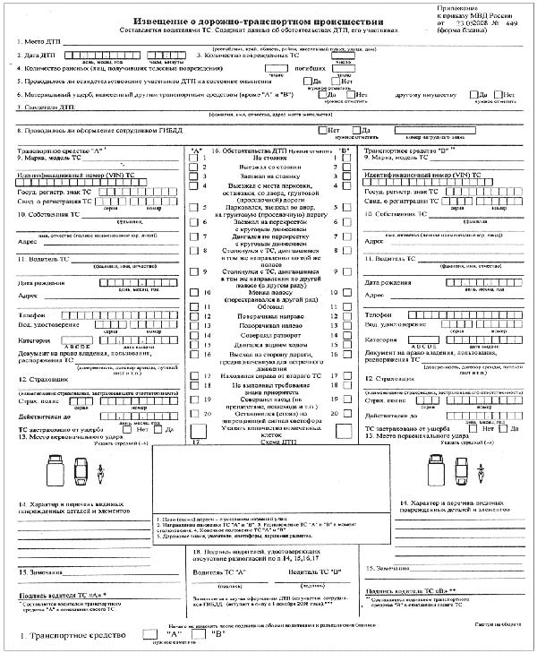 С 1-го июля на территории России начнет действовать новая форма бланка извещения о дорожно-транспортном происшествии. Новая фома бланка утверждена приказом министра МВД России .