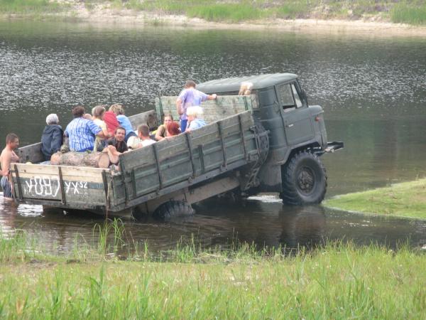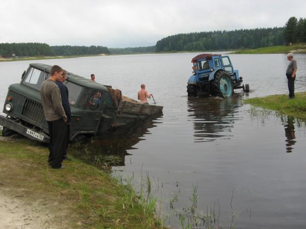 Прицепив опять на тросс «Ниву», пилот ГАЗ-66 крикнул: "Не дам себе засохнуть" и дал по газам. Чуть-чуть не доехал грузовик до другого берега , прочно увязнув в озере. Автомобиль «Нива» остался на середине брода по самые зеркала. Все это проходило опять же под веселый хохот местных крестьян.